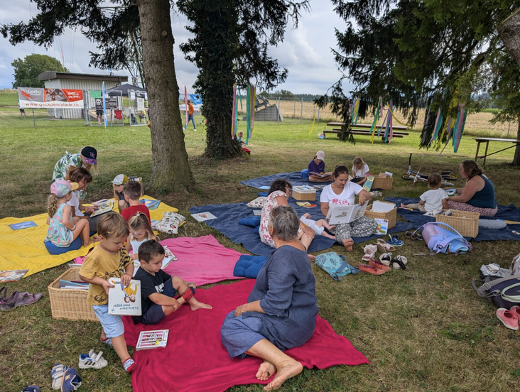 Le 17 août 2024 nous avons installé nos couvertures à Sottens, à l'occasion du Festival l'Emetteur en Fête. Un grand merci à l'équipe d'organisation du festival ainsi qu'aux nombreuses familles qui sont venues partager un moment de lecture avec nous !